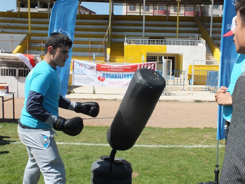 Ülkemizde spor kültürünün yaygınlaştırılması, halkımıza sağlıklı ve bilinçli spor yaptırmak amacıyla hayata geçirilen 'Koşabiliyorken Koş' projesi tüm hızıyla devam ediyor. ‘Koşabiliyorken Koş’ projesinin tanıtımı ve özel (down sendromlu, otizmli) öğrencilerimizin bu projeden yararlanmaları için Şehir Stadyumumuzda etkinlik düzenlendi. Yapılan etkinlikte İl Müdürümüz Hamdullah KARDAŞ yerel basına verdiği ropörtajda; “Gençlik ve Spor Bakanlığımız tarafınca düzenlenen ve 81 Gençlik Hizmetleri ve Spor İl Müdürlüğü'nün örnek çalışmalarıyla 7’den 70’e bütün vatandaşlarımıza ‘Koşabiliyorken Koş’ projesi adı altında imkan varken henüz geç kalmamışken insanları spora teşvik etmeye çalışarak herkesin spor yapmasını istiyoruz. Bilindiği gibi Gençlik ve Spor Bakanlığımızın bütün tesisleri 7/24 esasına dayalı olarak vatandaşlarımızın hizmetine ücretsiz bir şekilde açıktır. Vatandaşlarımızın bizim tesislerde geçirdiği vakitten yaptığı spordan memnunuz. 7’den 70’e başka yerlere gideceklerine bizim tesislerde vakit geçirmelerini istiyoruz. Bugünde ‘Koşabiliyorken Koş’ projemizin tanıtımını yapıyoruz. Tabi bu faaliyetlerimiz yılın 12 ayı devam edecektir. Tüm halkımızı tesislerimize bekleriz.” dedi. Yapılan etkinliğe İl Müdürümüz Hamdullah KARDAŞ, Spor Şube Müdürümüz Halit BAYSAL, Gençlik Merkezi Müdürü Murat KARATAŞ, ASKF Başkanı Kemal TÜRKAN, Muş Alparslan Üniversitesi Besyo Müdür Yd. Mustafa Önder ŞEKEROĞLU, Antrenörlerimiz, Liderlerimiz ve vatandaşlarımız katılım sağladı.