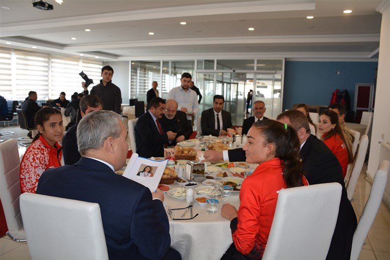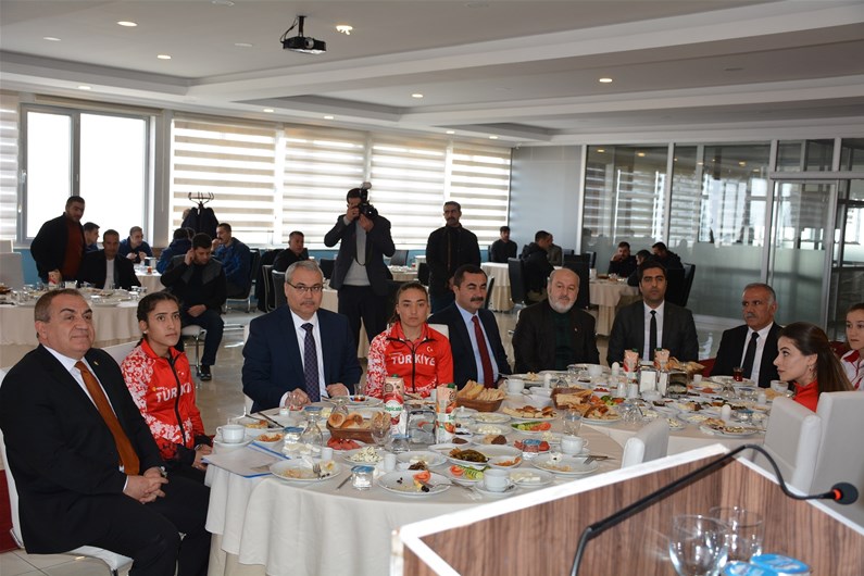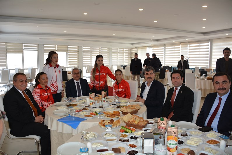 Atletizm branşında Kurumumuzu, İlimizi ve Ülkemizi üstün başarılarıyla temsil eden Milli Sporcularımız; Emine Akbingöl, Derya Kunur ve Berfin Barışer’ı kutlamak için Valimiz Sayın Doç. Dr. İlker Gündüzöz ve Milletvekilimiz Sayın Mehmet Emin Şimşek’in katkılarıyla kahvaltı programı düzenlendi.