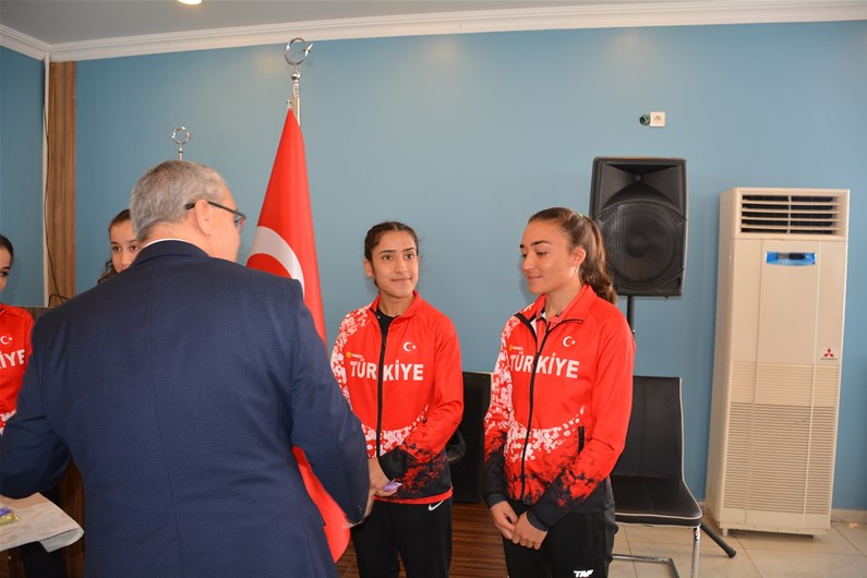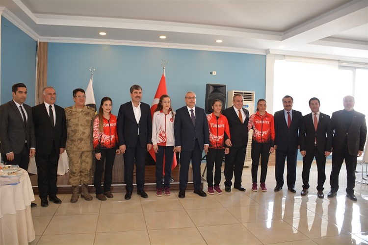 Düzenlenen programa Sayın Valimiz ve Milletvekilimizin yanısıra Belediye Başkanımız Sayın Feyat Asya , İl Emniyet Müdürümüz Sayın Ahmet Arıbaş, İl Jandarma Komutanımız Sayın Albay Bülent Baykal, AK Parti İl Başkanı Sayın Rahmetullah Yaktı, AK Parti Merkez İlçe Başkanı Sayın İbrahim Avcı ve ismini sayamadığımız birçok misafir katıldı. İl Müdürümüz Emrullah Güler’in açılış konuşmalarının ardından Sayın Valimiz, Sayın Vekilimiz ve Sayın Belediye Başkanımız tarafından Milli Sporcularımıza altın hediye edildi.
