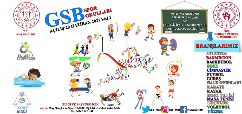 Gençlik ve Spor Bakanlığı tarafından her yıl “Bu Yaz Spora Başlamalısın!” sloganıyla açılan GSB Spor Okulları bu yılda 81 ilde olduğu gibi Muş’ta da açılacak.